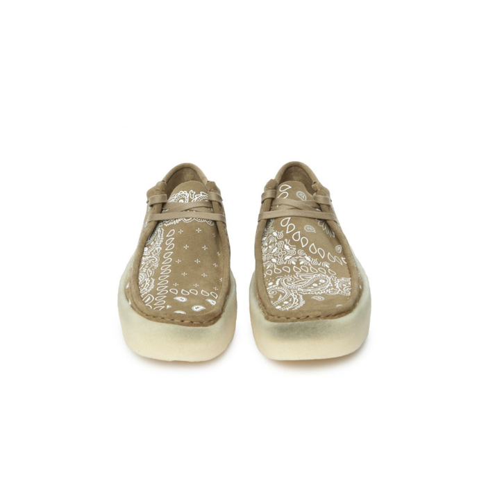 Our street-inspired cup sole silhouette Wallabee Cup is crafted in pale khaki suede and topped with authentic laces and signature logo fobs. Set atop a lightweight natural pebble crepe sole, this summer staple is prepped for endless wear.