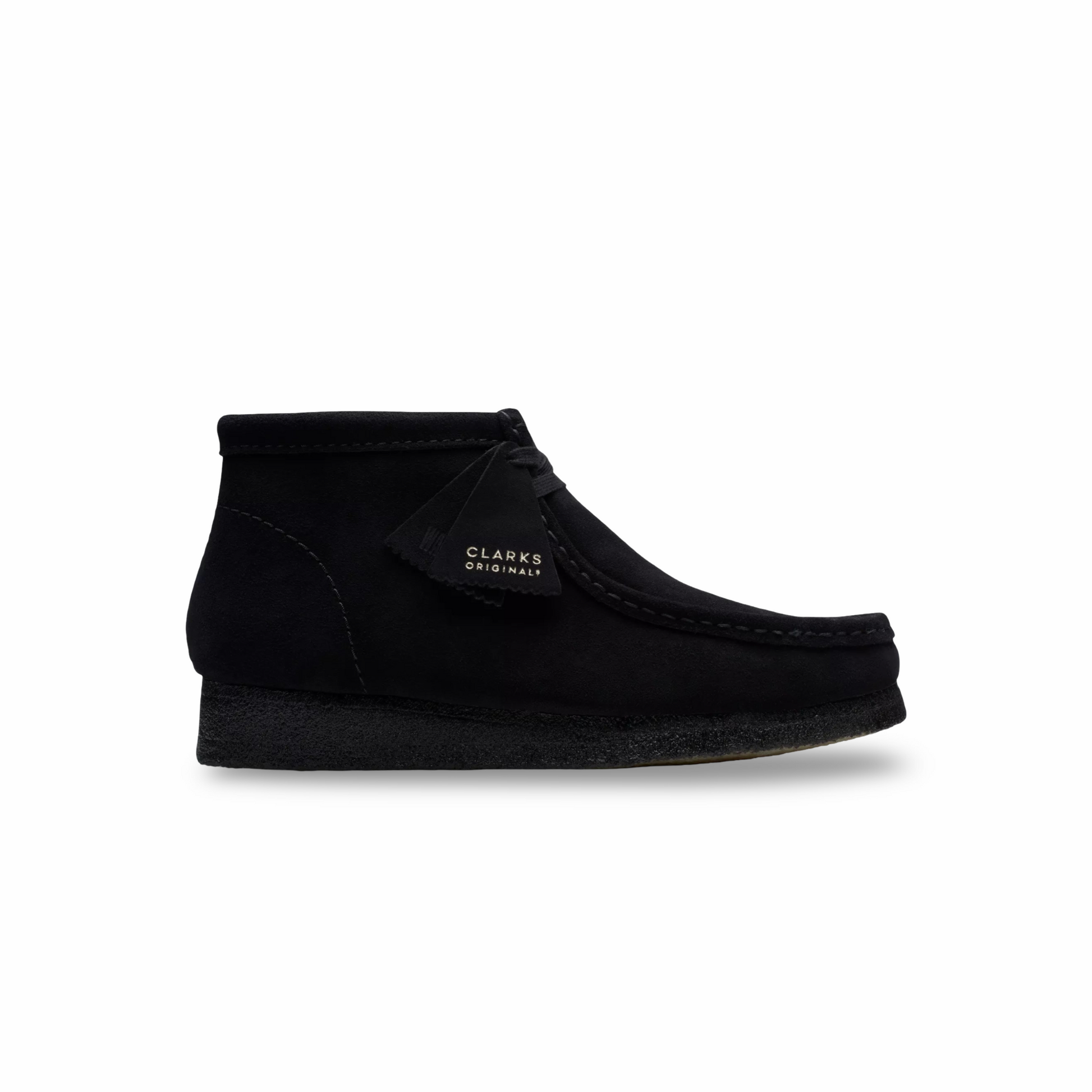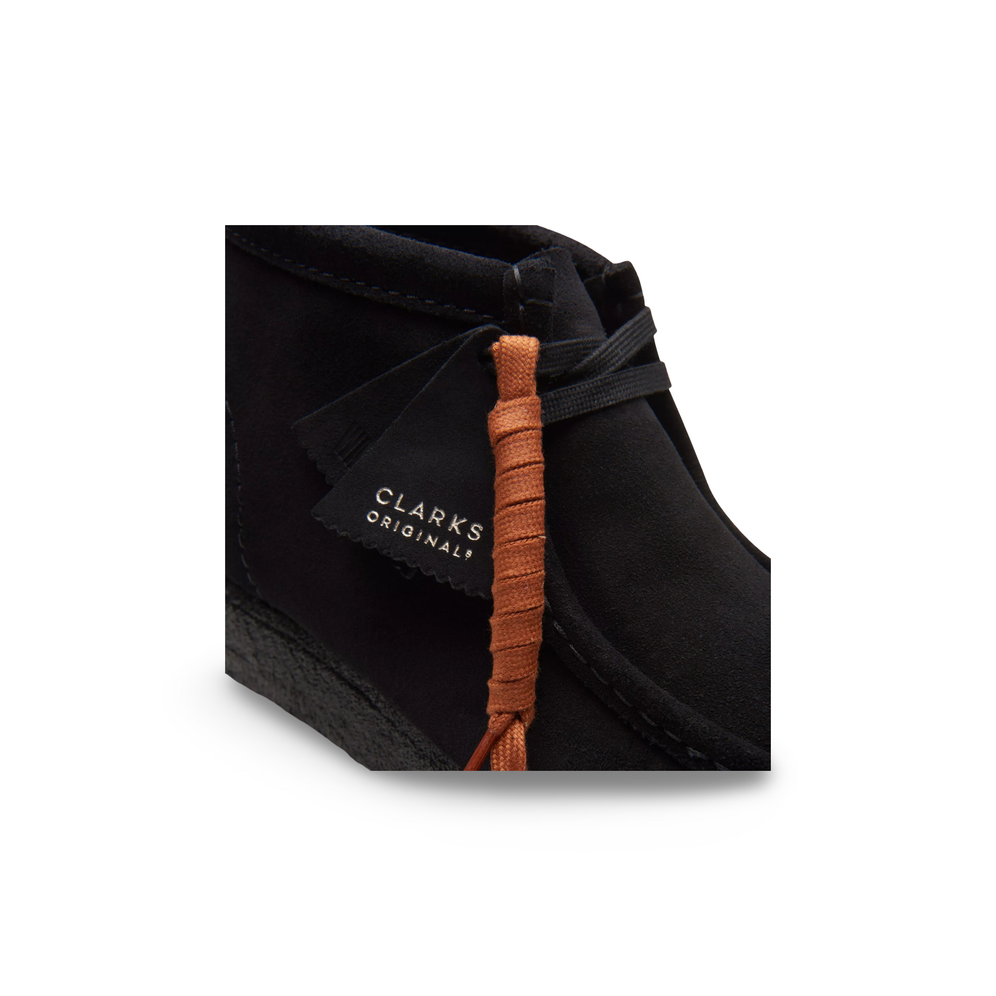 The Wallabee has become an iconic classic in our Clarks Originals collection across the globe thanks to its moccasin construction and structural silhouette. Featuring clean and simple lines, this comfortable lace-up boot in black suede is teamed with a three-quarter sock for supreme comfort and our signature crepe sole which continues to stand the test of time.