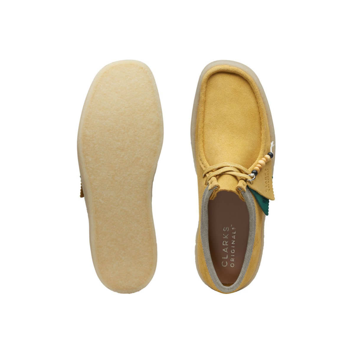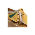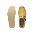 Elevate your casual look with the Clark's Original Wallabee Cup in Amber Gold. This street-inspired cup sole silhouette is crafted from rich amber gold suede, offering a warm, eye-catching hue. The design features authentic laces and the iconic Clarks Originals® fobs, while the lightweight natural rubber pebble crepe sole ensures all-day comfort and durability. Perfect for summer and beyond, this shoe combines timeless style with modern comfort.