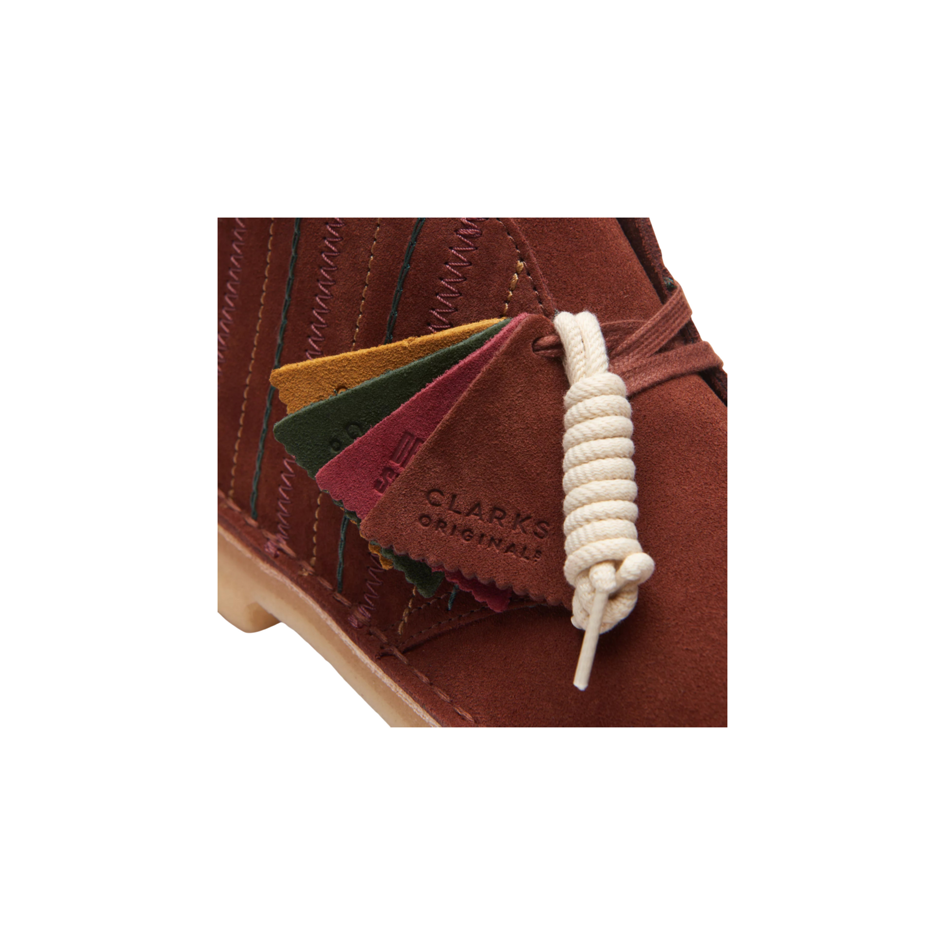 The Clarks Originals Desert Boot, designed by Nathan Clark in 1950, is a global icon inspired by Cairo’s Old Bazaar. Revered by cultural icons from beatniks to Britpop bands, this boot remains true to its roots with clean lines, premium rust brown suede, and a sustainably sourced crepe sole. Instantly recognizable and forever iconic.