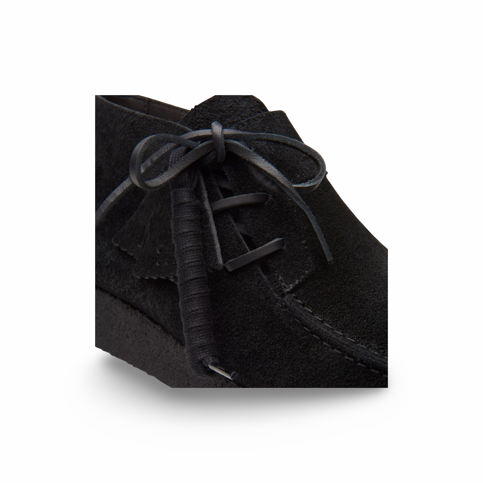 Elevate your everyday style with the Clarks Original Lugger Boot in black waxy leather. Designed for versatile wear, this boot seamlessly blends classic craftsmanship with modern comfort. The smooth black waxy leather upper offers durability and a sleek, polished look, while the sturdy natural crepe sole ensures superior traction and comfort. Accented with flat laces and signature fobs, the Lugger Boot provides a refined, casual finish that's perfect for any occasion.