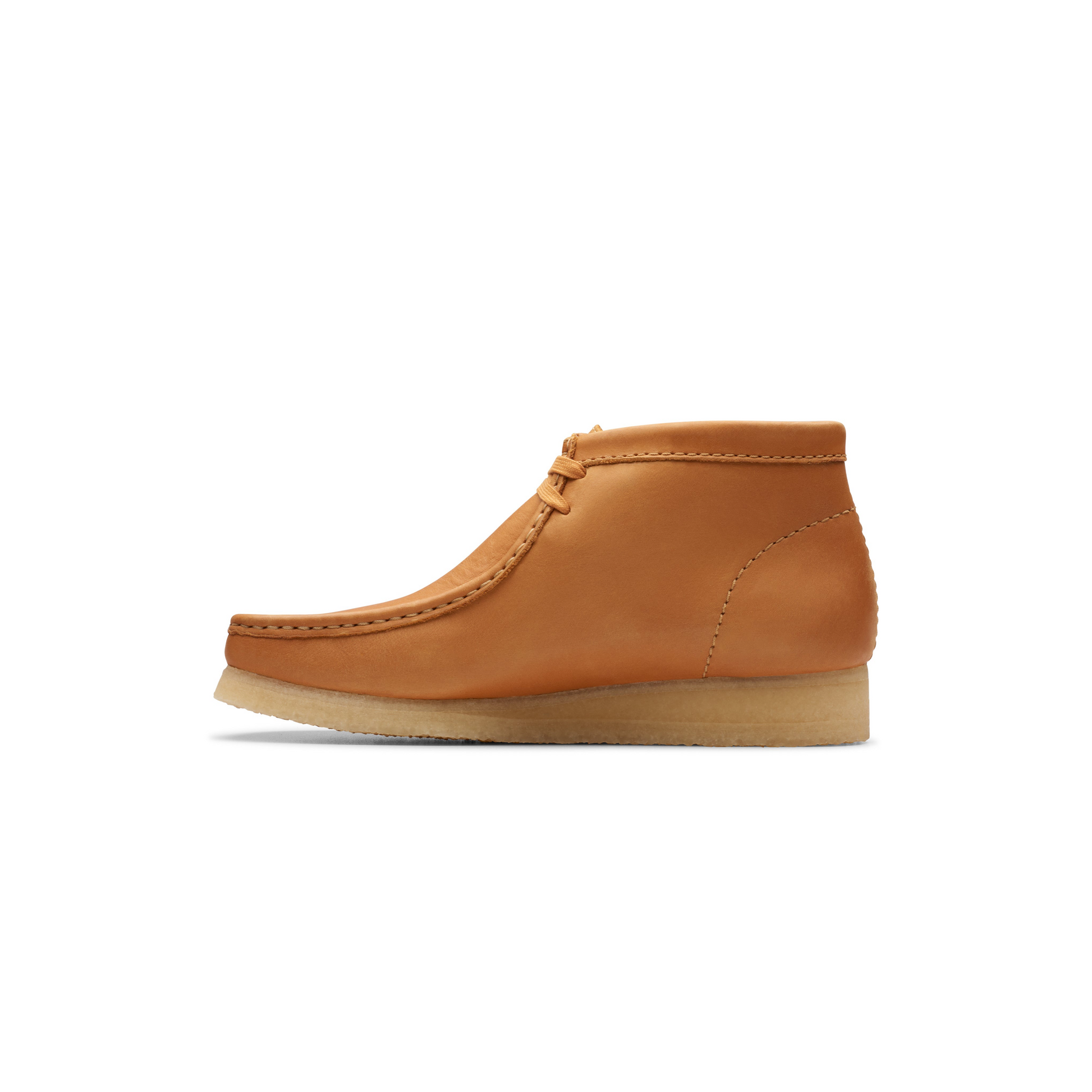 The Wallabee Boot Mid Tan Lea embodies timeless elegance and modern comfort, showcasing its place in the Clarks Originals collection. Crafted from premium tan leather, this lace-up boot merges classic moccasin construction with a sophisticated, refined style. Its sleek lines are complemented by a soft leather lining and a cushioned leather sock for enhanced comfort. The boot features a durable crepe rubber sole that provides reliable traction and long-lasting wear.