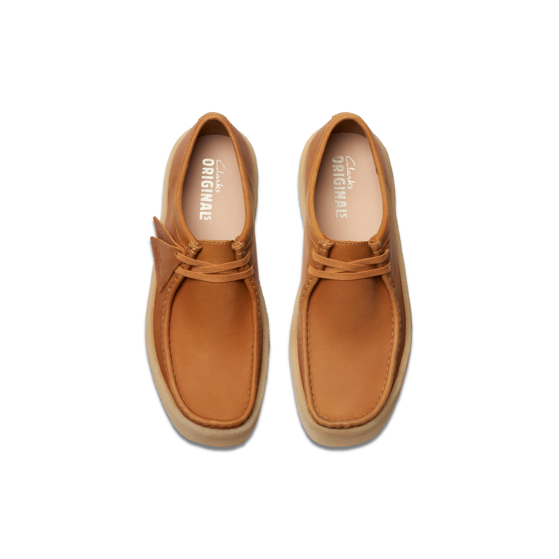 Elevate your style with the Wallabee Cup Mid Tan Lea, a sleek silhouette that fuses rich color with timeless design. Crafted from premium tan leather, this standout shoe features authentic laces and is finished with signature Clarks Originals® logo fobs. The lightweight natural pebble crepe sole provides all-day comfort, making it perfect for both casual and semi-formal occasions.