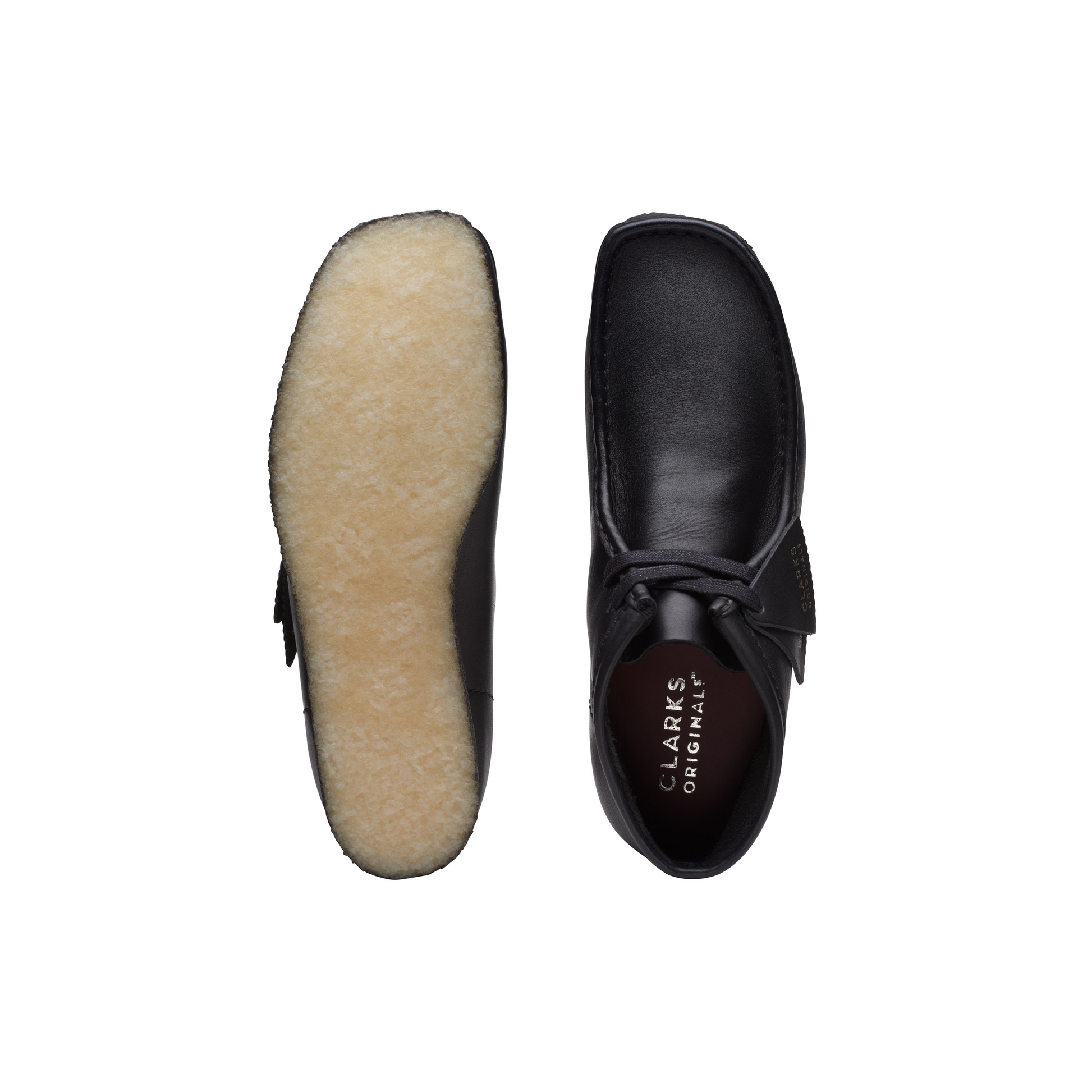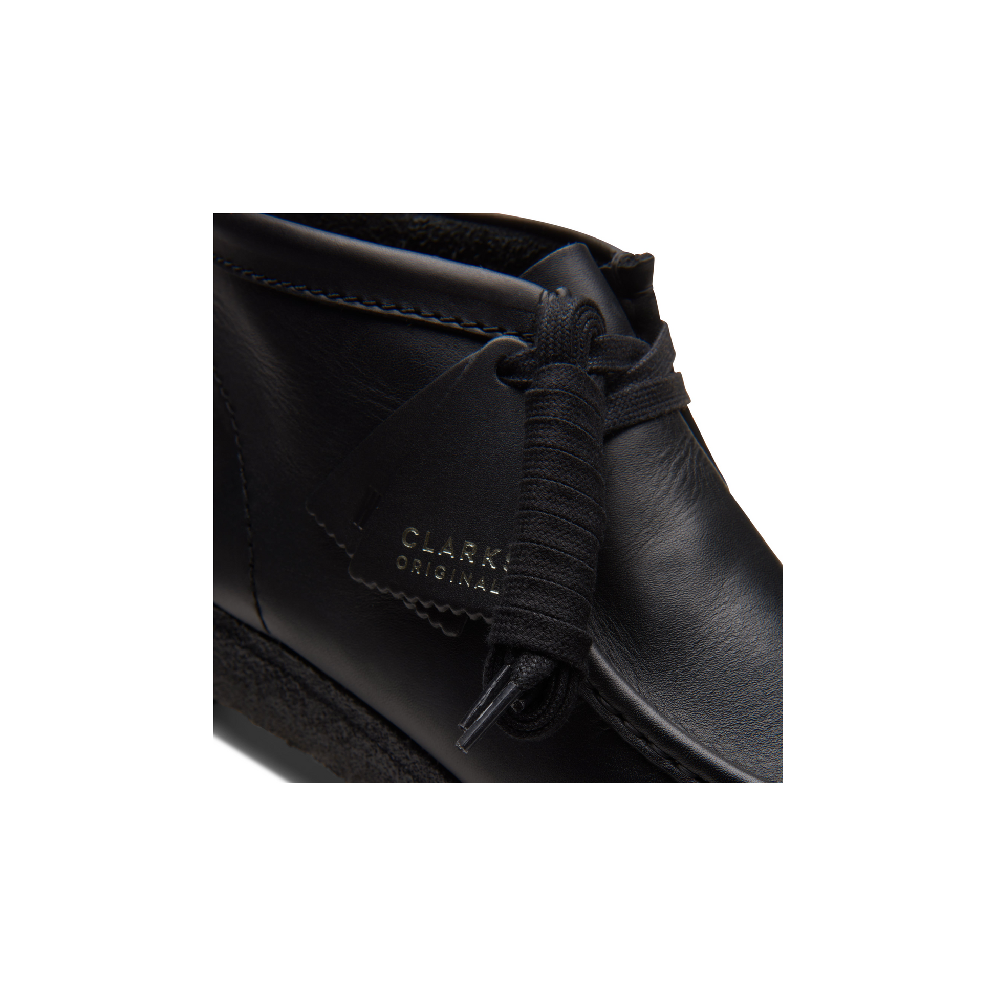Make a statement this season with a bold new take on our heritage Wallabee Boot. Featuring rugged black leather uppers for a luxurious touch, this silhouette stays true to its roots with a chunky pebble crepe sole. Waxy laces and tonal fobs complete this timeless classic.