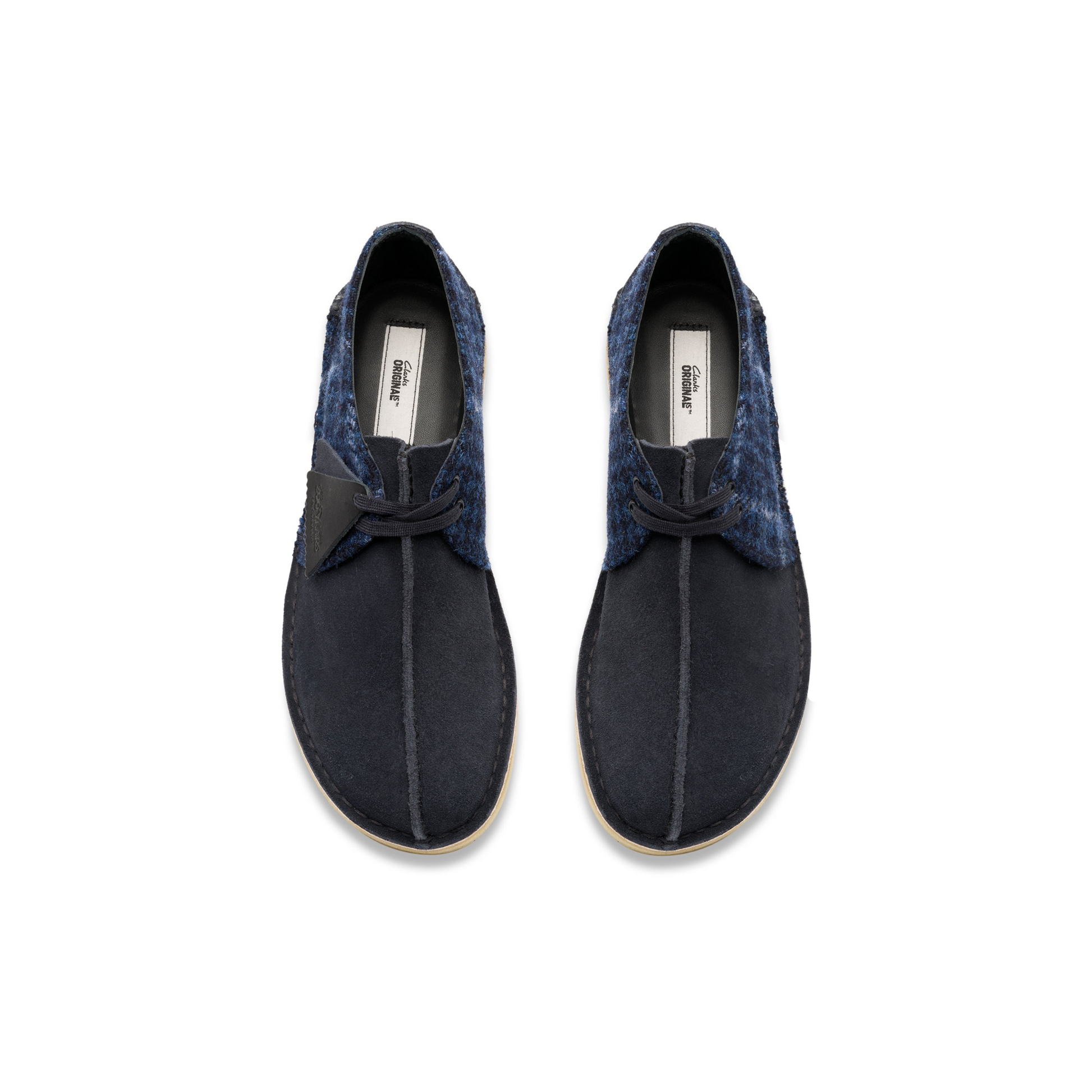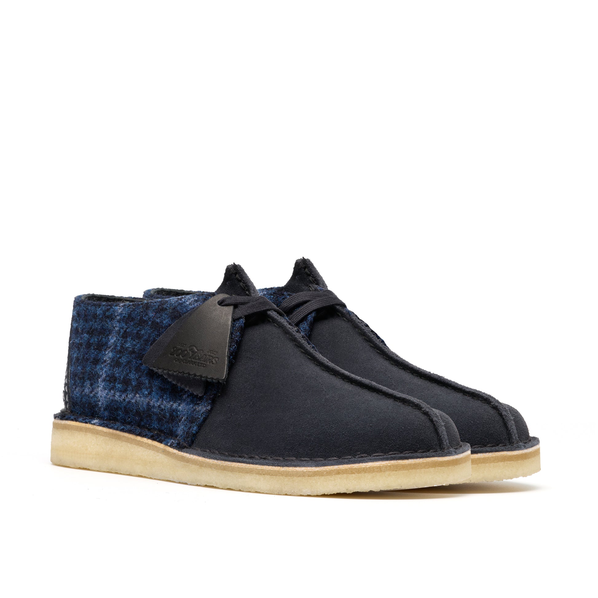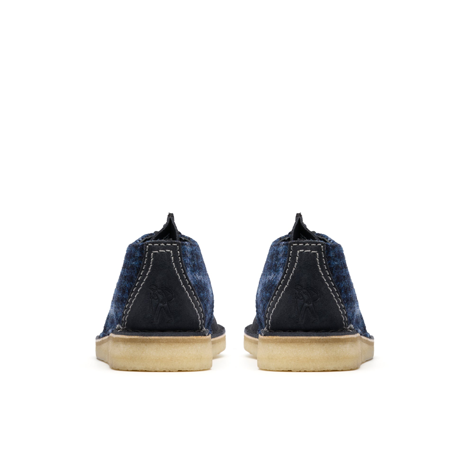 The Clarks Desert Trek Harris Tweed Pack merges traditional British fabric with the brand's distinctive design. This special edition combines navy Harris Tweed quarter panels with premium suede on the vamp and butt seam for a distinctive textural appeal.