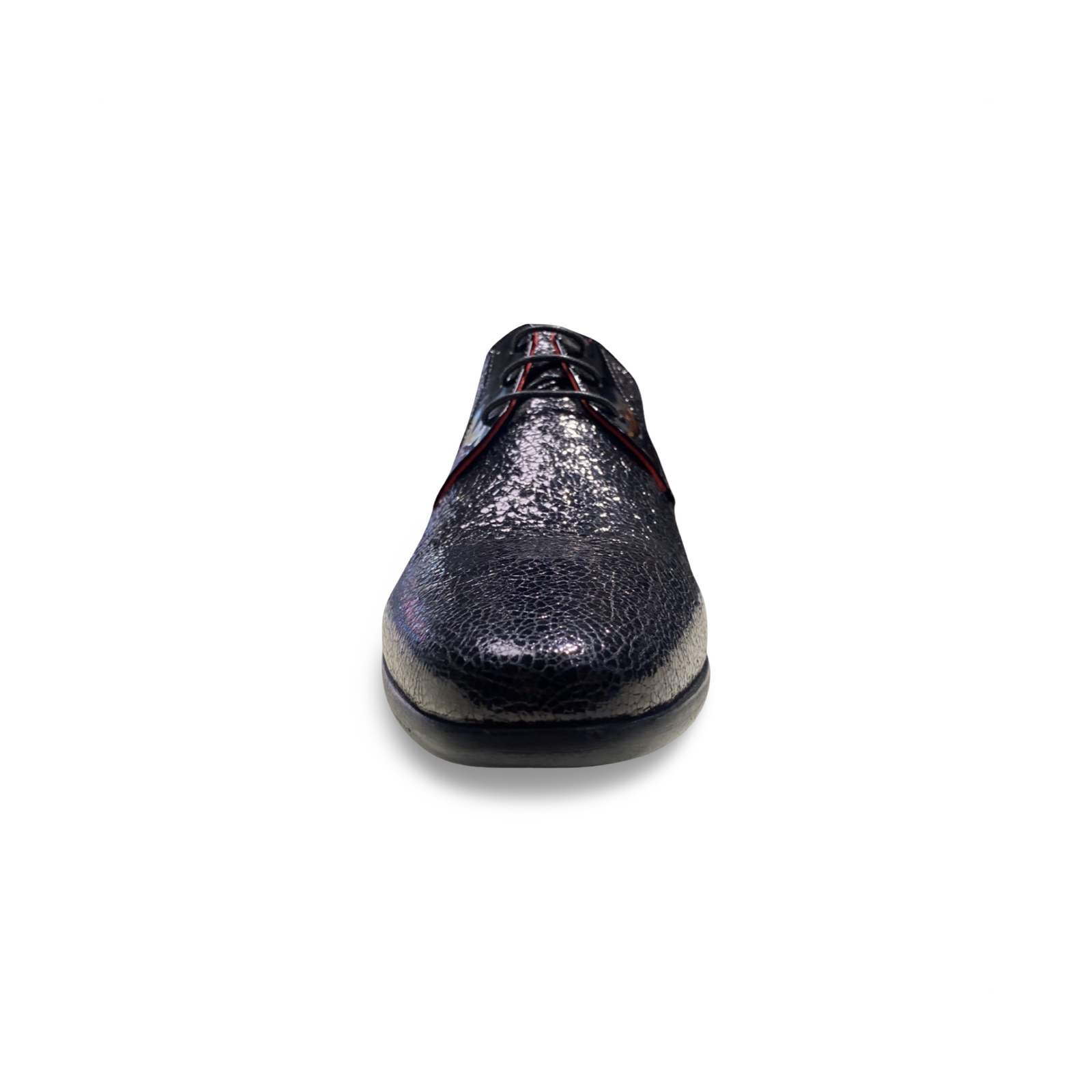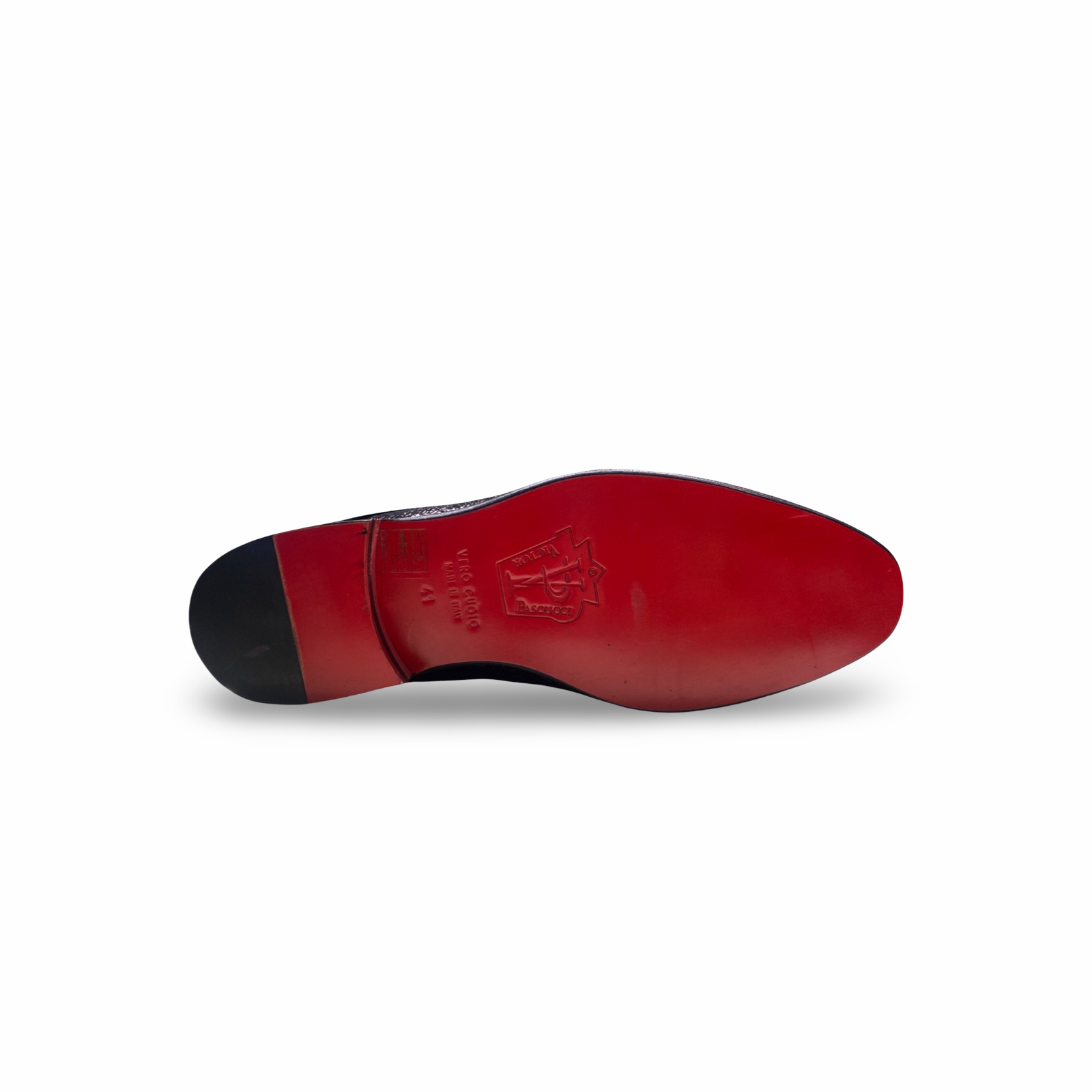 Introducing the Victor Pascucci "Dusk Reflections" dress shoe, an impeccable blend of artistry and sophistication. Handmade in Italy from printed calf and patent leather in a deep black hue, this men’s dress shoe features a sleek silhouette that beautifully captures light. The striking contrast of textures adds a modern flair, making the Dusk Reflections ideal for both formal occasions and stylish evenings out. Step into a world of elegance and make a memorable impression with this distinguished piece.