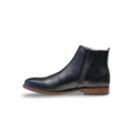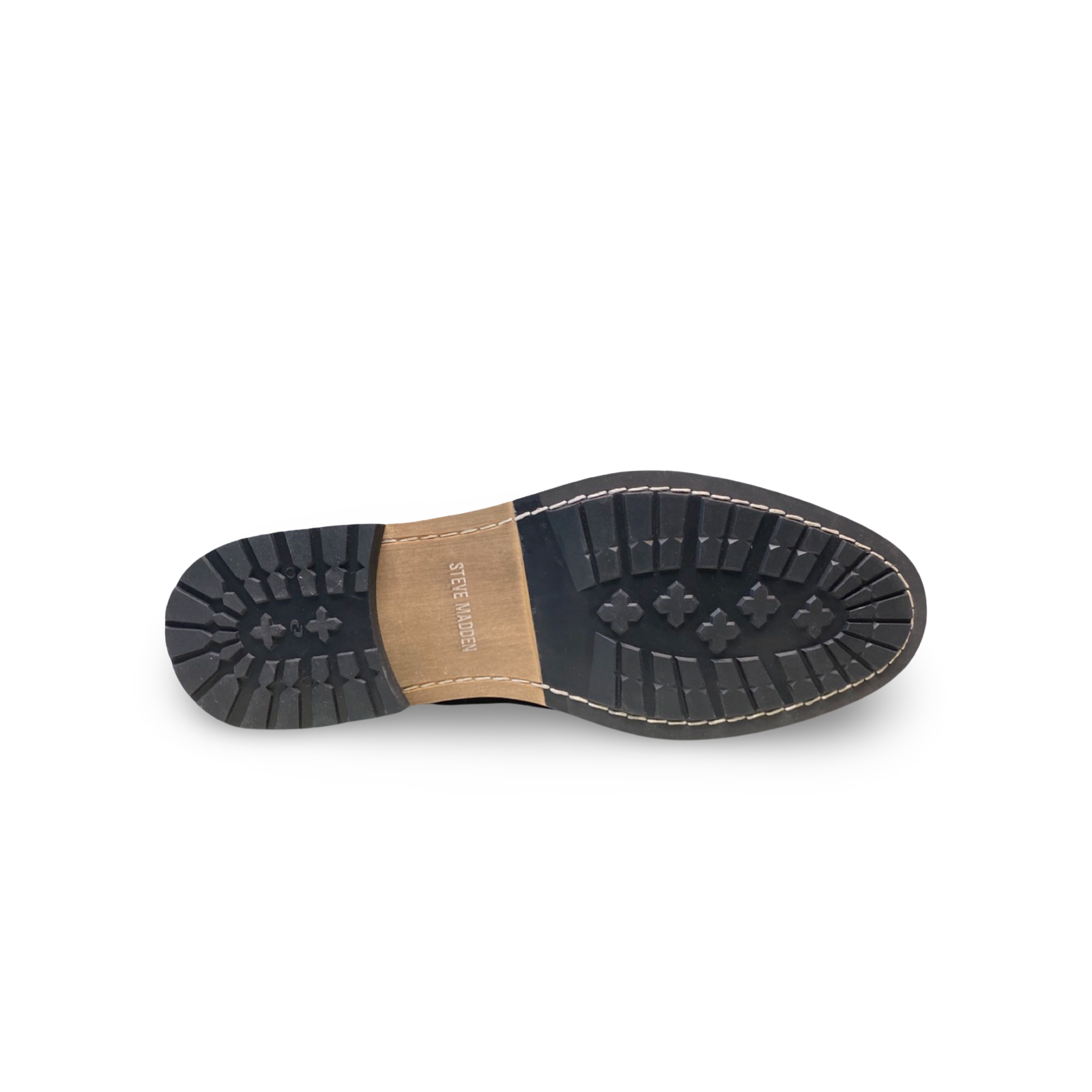 The Steve Madden Harlan Chelsea Boot in black features a sleek leather upper and a timeless slip-on design with no laces for effortless wear. Crafted from all man-made materials, this versatile boot combines durability and style, making it a perfect addition to your wardrobe.