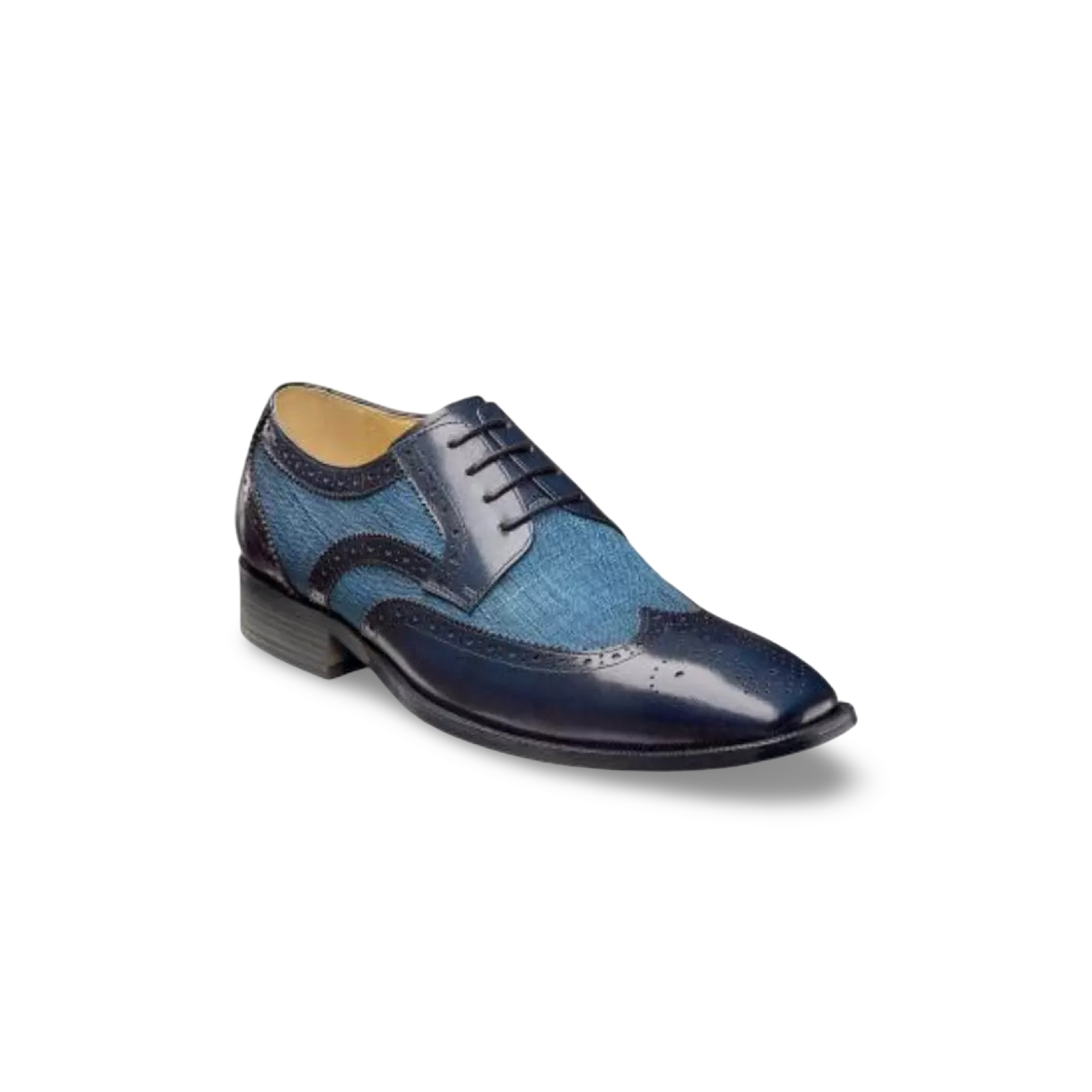 Embrace your bold side with the Kemper Wingtip Oxford from Stacy Adams. This standout style features a distinctive blend of genuine buffalo leather and linen fabric in elegant, subtle hues. Perfect for making a statement, this stately Oxford is designed to take you through any occasion with confidence.