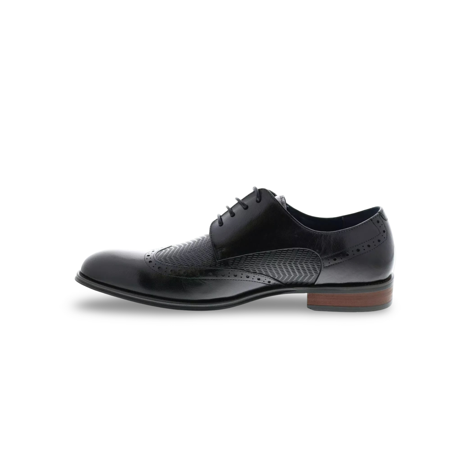 Embrace timeless style with a modern edge in the Stacy Adams Magure Black Wingtip Oxford. Featuring a sleek black leather upper with sophisticated perforations, this shoe is designed to stand out at any occasion, from a night out to a special event.