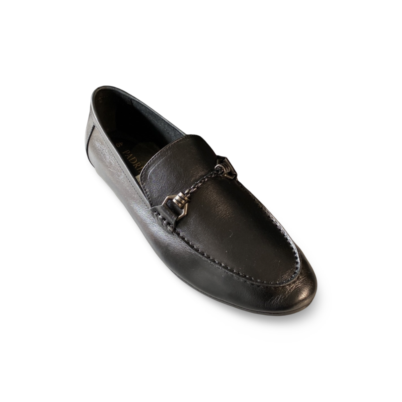 Make your mark with the Padrinii Black Formal Loafer—where modern sophistication meets traditional craftsmanship. Designed for the man who values detail, this loafer features a sleek braid-like pattern and a striking silver-tone metal buckle that commands attention without shouting.