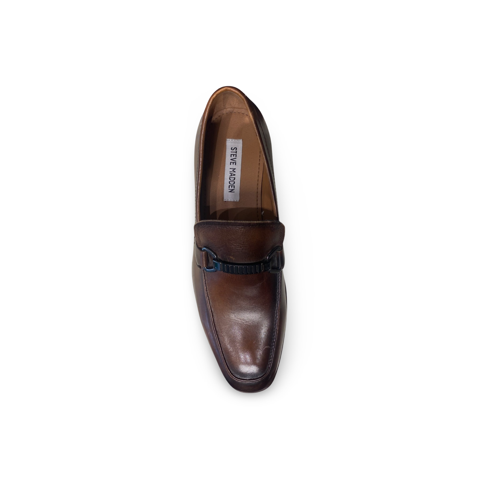 The Steve Madden PRAKTIKL Brown Leather Loafer combines classic sophistication with modern flair. Crafted with a sleek leather upper, this dress shoe features a stylish buckle accent and functional laces for a secure fit. Made with durable, man-made materials, it's the perfect blend of elegance and practicality for any formal or semi-formal occasion.