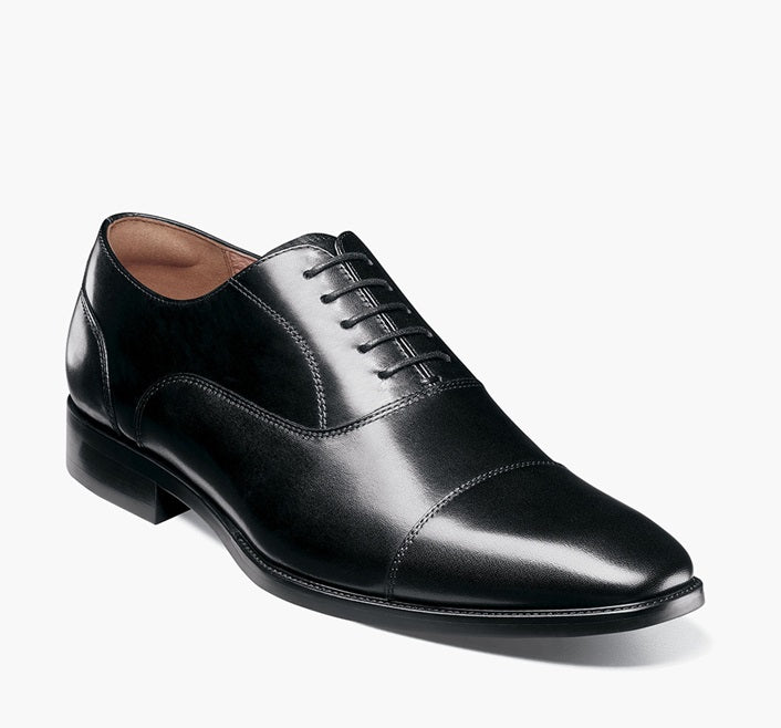 The hand burnished leather upper and sleek profile of the Florsheim Sorrento Lux Cap Toe Balmoral Oxford are complemented by leather linings and fully cushioned footbed. Dressed up or down the Sorrento is a versatile addition to any collection.