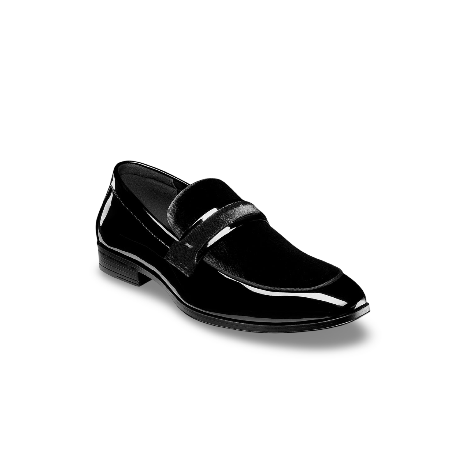 - Man-made patent and velour textile upper