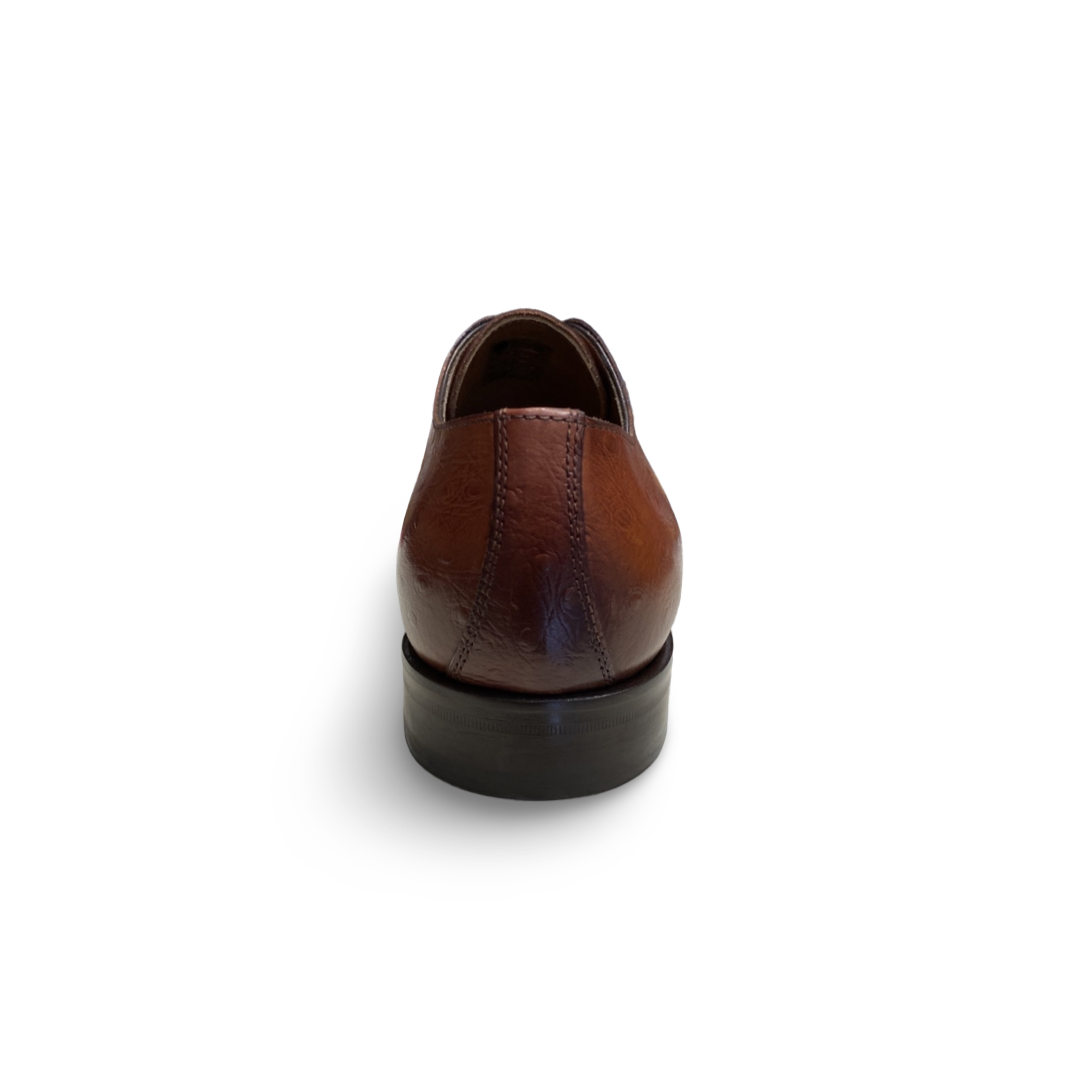 Genuine leather upper with an authentic ostrich print embossed finish in a rich tan color.