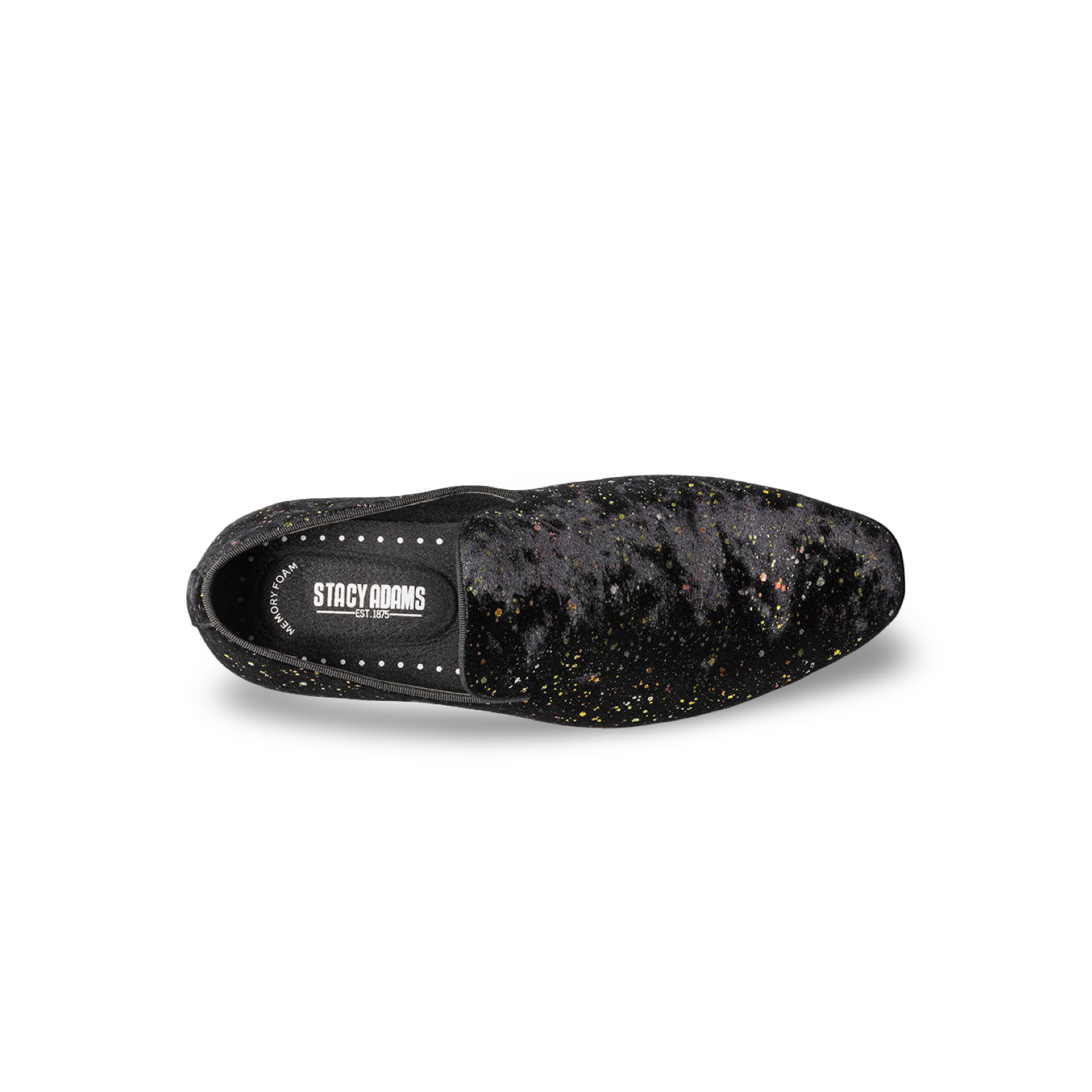 Looking for a shoe that will leave no head unturned? Featuring an eye-catching glitter velour upper and the comfort of a Memory Foam footbed, give yourself the star treatment with the Stacy Adams Stellar Plain Toe Glitter Slip On.