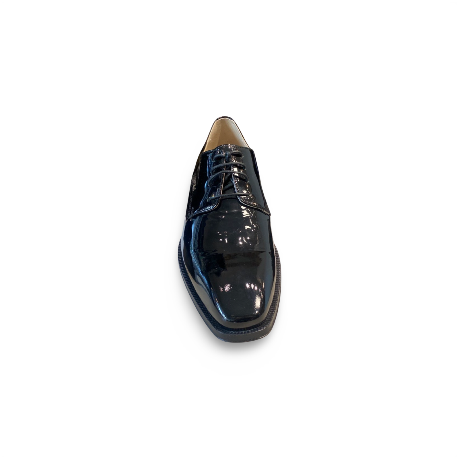 Introducing the Victor Pascucci "Titan Black" dress shoe, a striking example of Italian craftsmanship. Handmade from premium patent leather, this black formal shoe features a sleek, shiny finish that captures attention. Its sophisticated design effortlessly elevates any formal ensemble, making it the perfect choice for special occasions or professional settings. With meticulous attention to detail and a comfortable fit, the Lustrous Noir combines style and elegance for the modern gentleman.