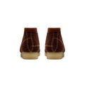 Built with traditional moccasin construction, the boot includes three collectible FOBS and two lace options—a black flat lace and a rust-and-black patterned lace—allowing for personalized styling. The natural pebble crepe sole ensures lasting comfort and traction.