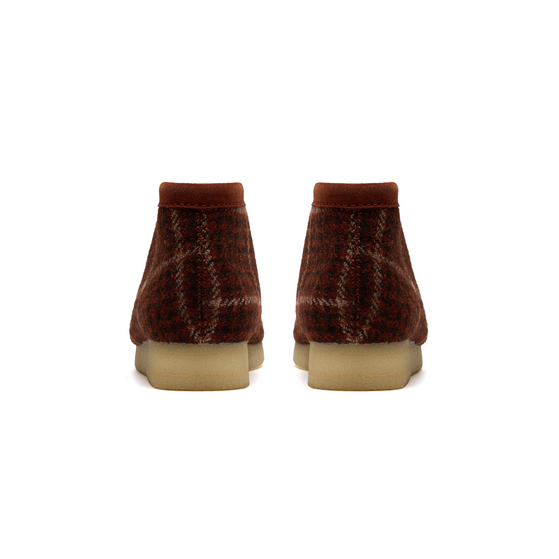 The Clarks Wallabee™ Boot Harris Tweed Pack offers a distinctive take on the classic design, featuring rust-colored Harris Tweed quarter panels paired with supple suede on the vamp and collar. This combination creates a rich contrast of texture and depth.