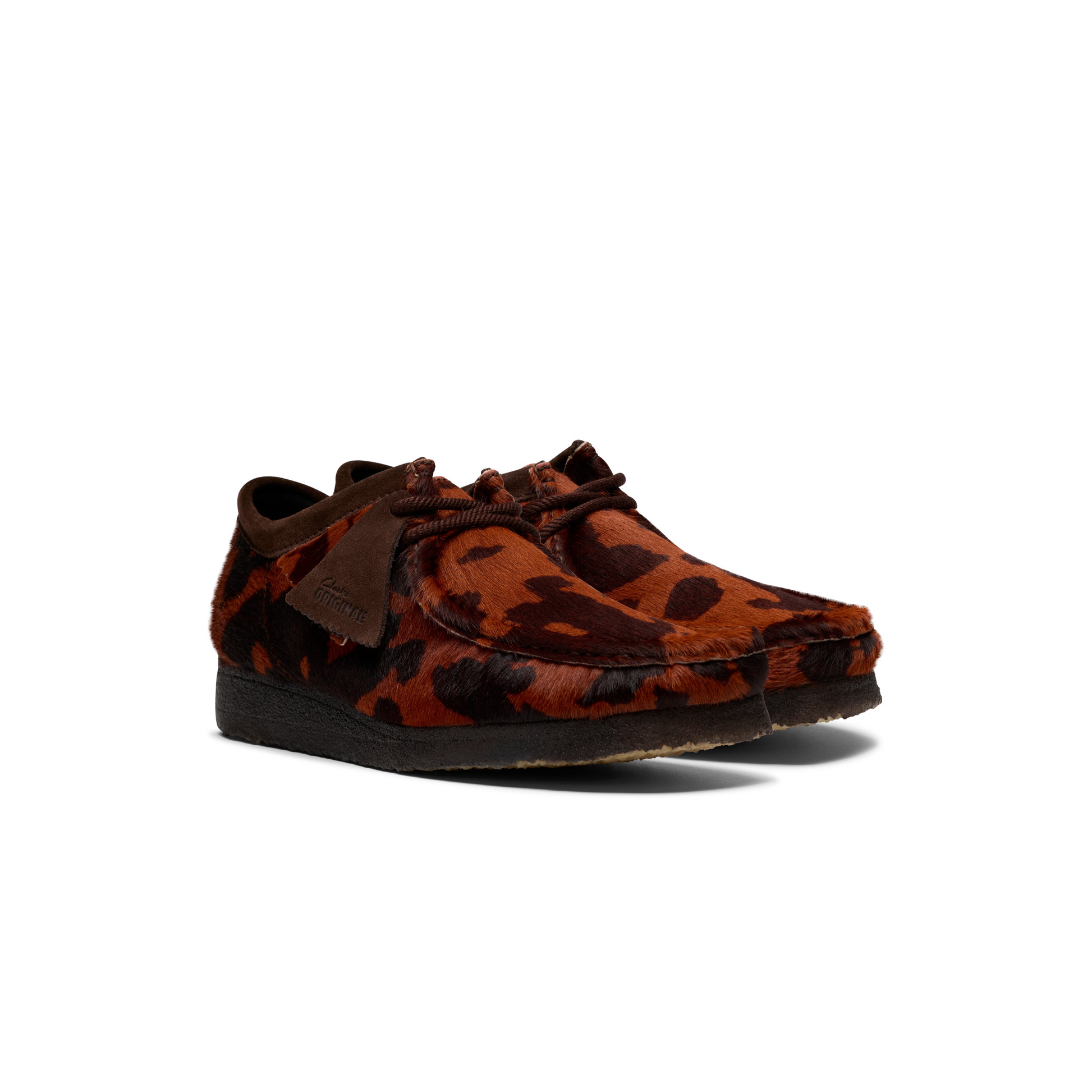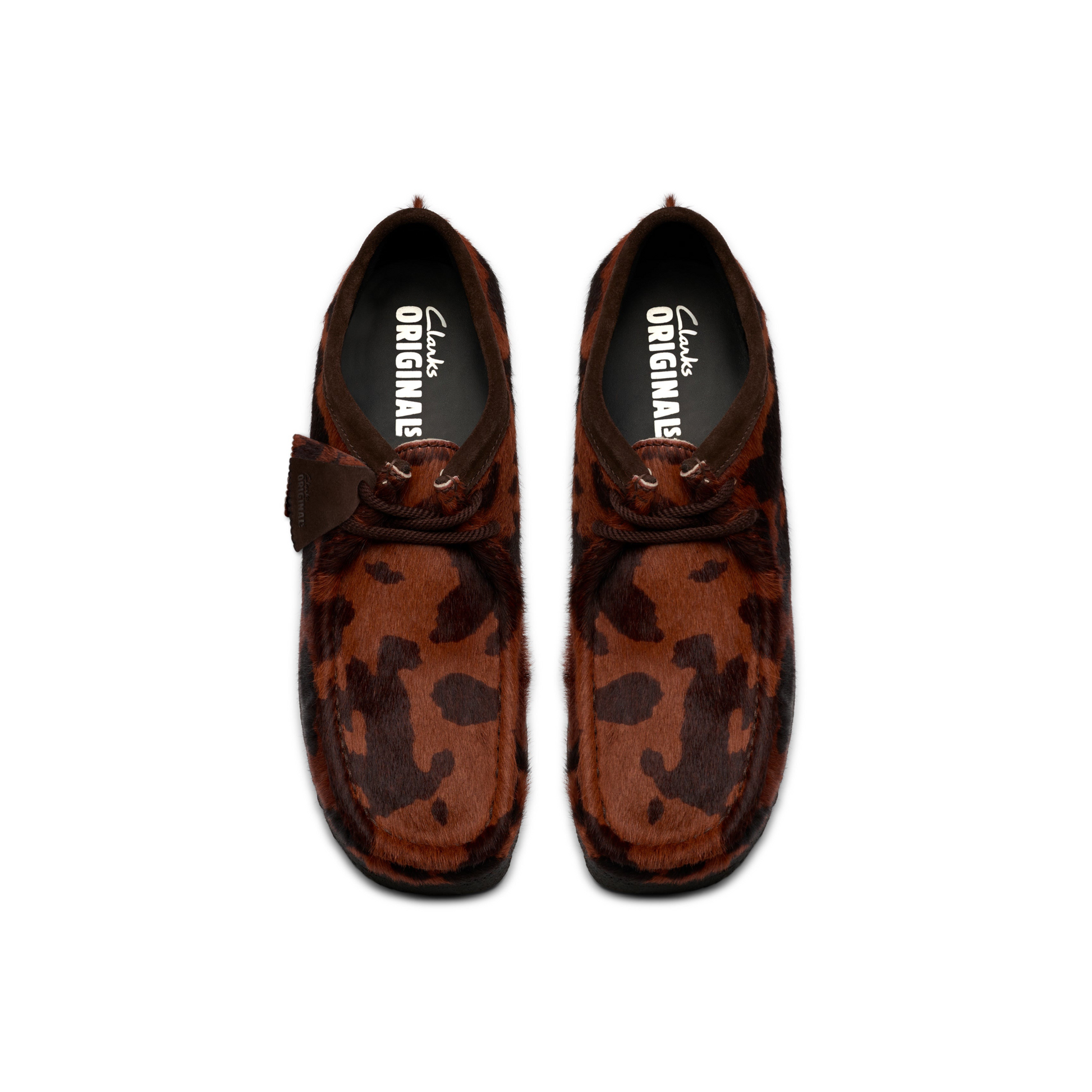 The Wallabee™ Hair On Pack makes a distinctive statement for AW25, featuring a unique Brown Cow Print upper crafted from genuine cow hair. This bold texture is balanced by the shoe's classic moccasin construction and hand-stitched apron seam.