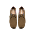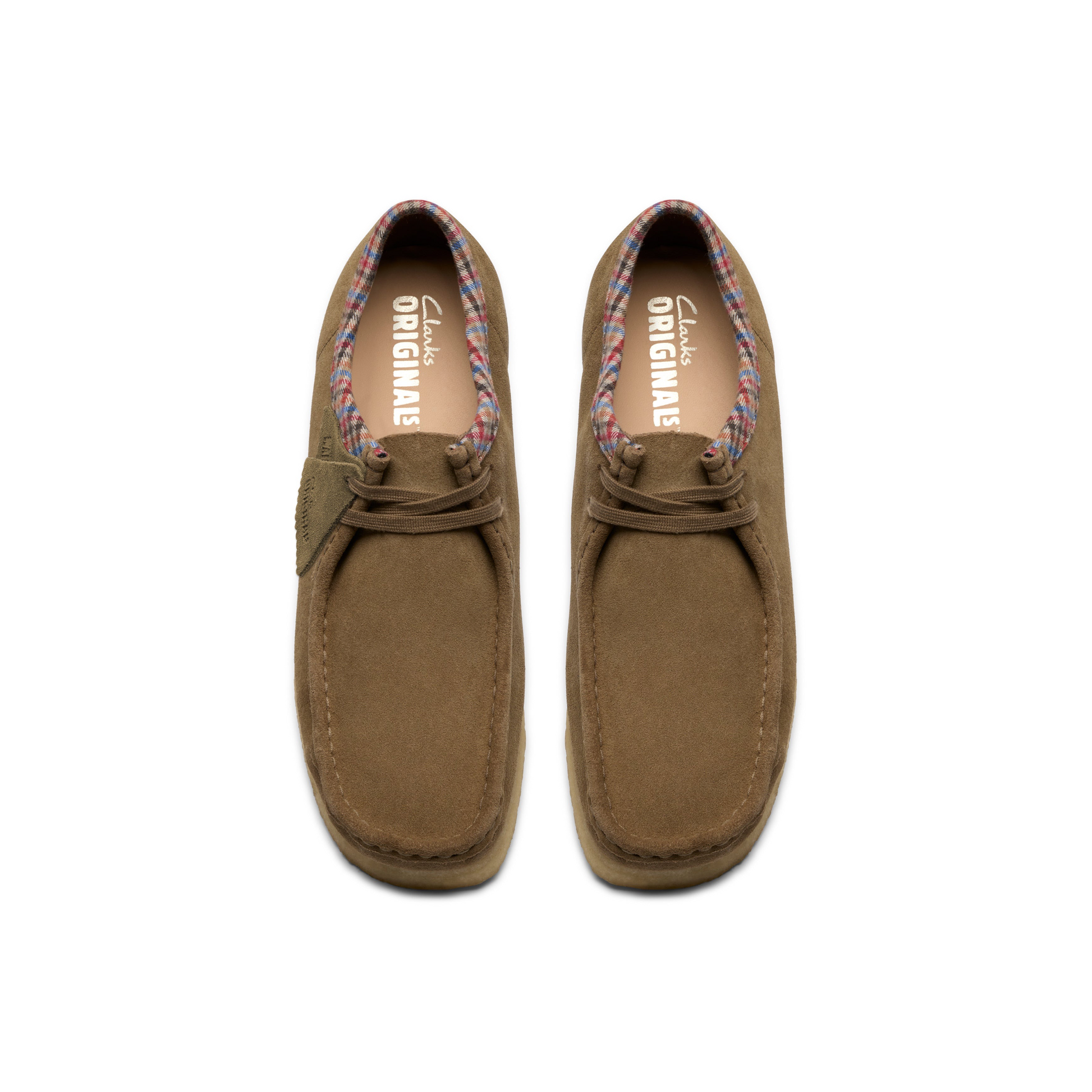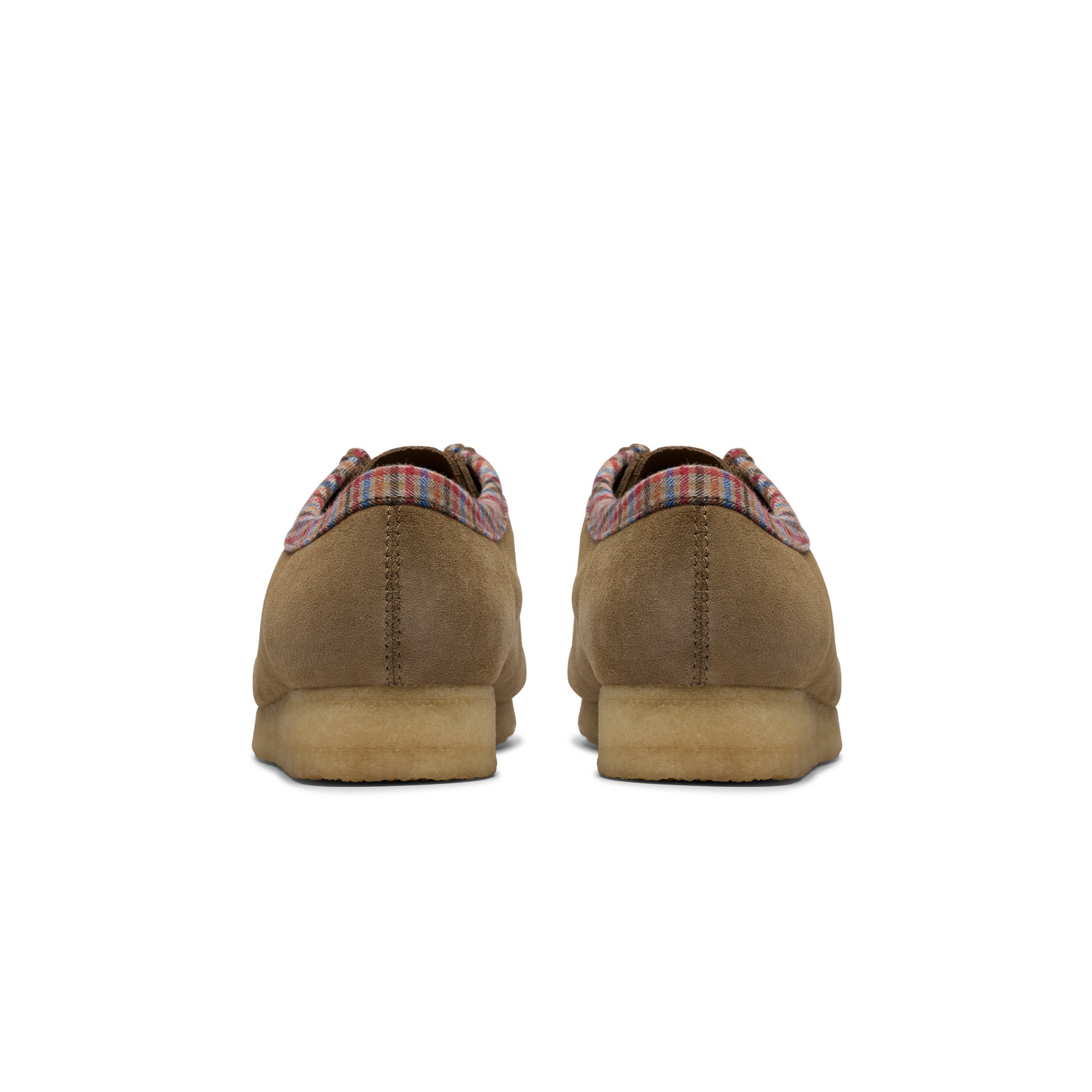 The Wallabee™ Interest Pack offers a fresh perspective on a classic design. This version is crafted from premium dark taupe suede, distinguished by a unique Harris Textile print trim on the collar that adds distinctive character.