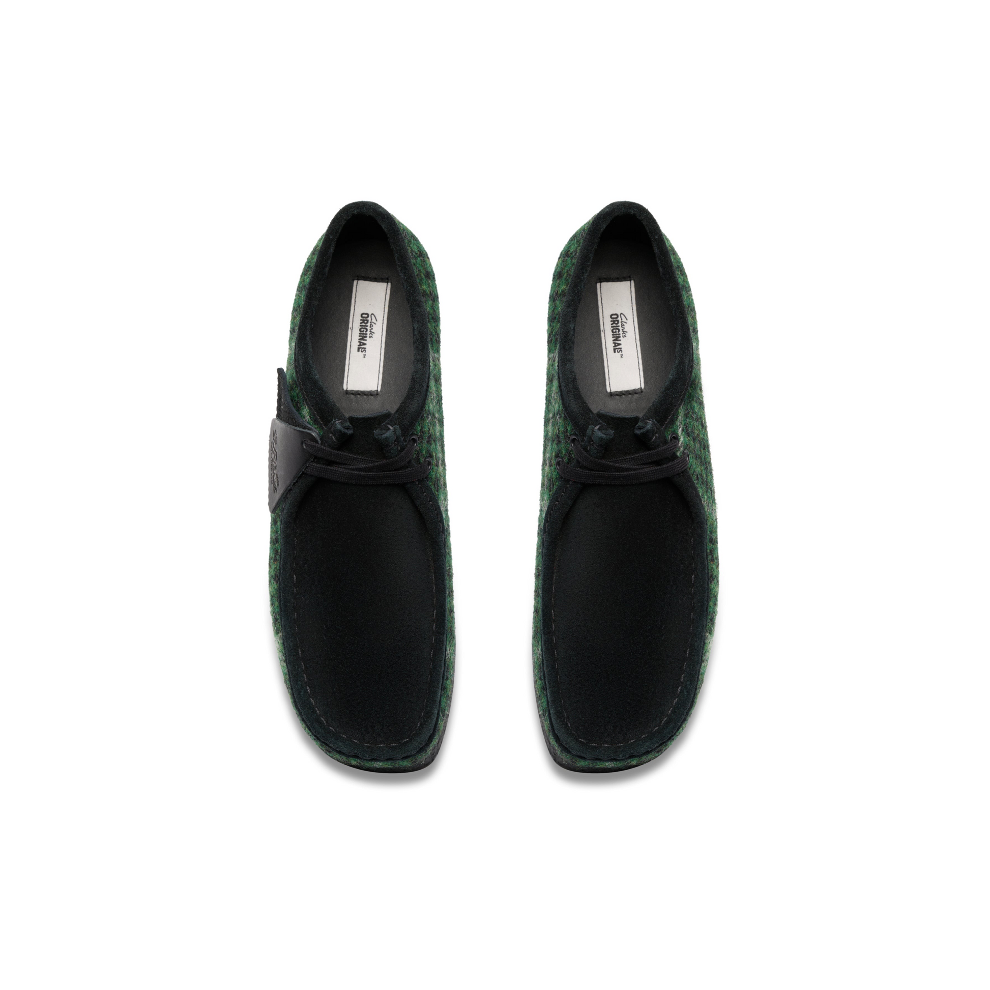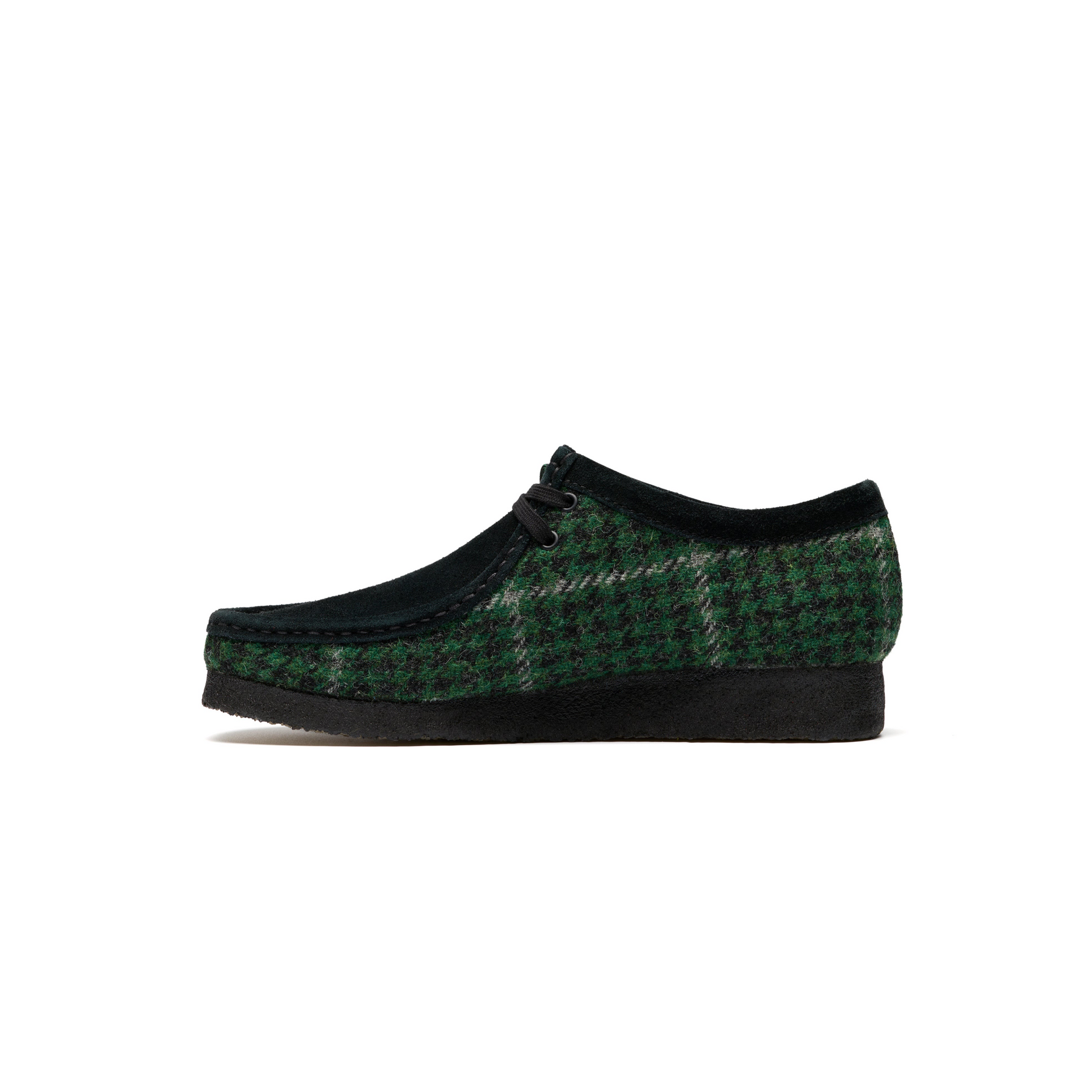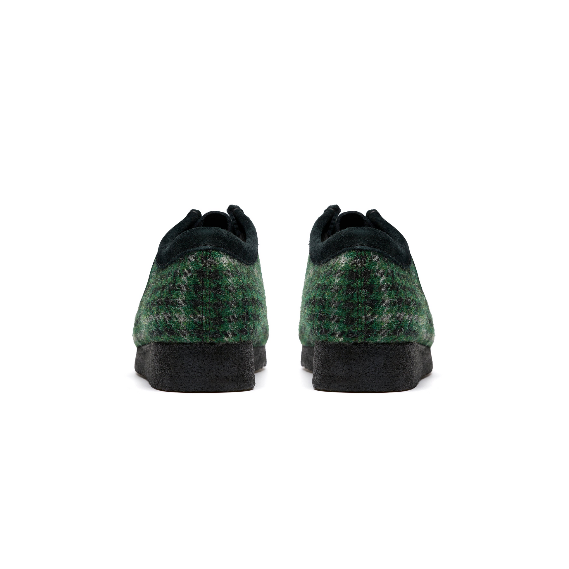The Clarks Wallabee™ Harris Tweed Pack reimagines the iconic silhouette with a distinctive blend of heritage fabric and modern details. This edition features rich green Harris Tweed on the quarter panels, complemented by supple suede on the vamp and collar for a striking textural contrast.